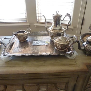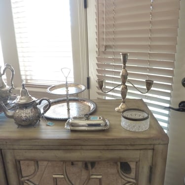 · Sterling candlesticks and a matching numbers silverplate tea set