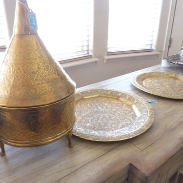· Fine Brass pieces from Morocco, including a Tangine and 2 hand hammered trays